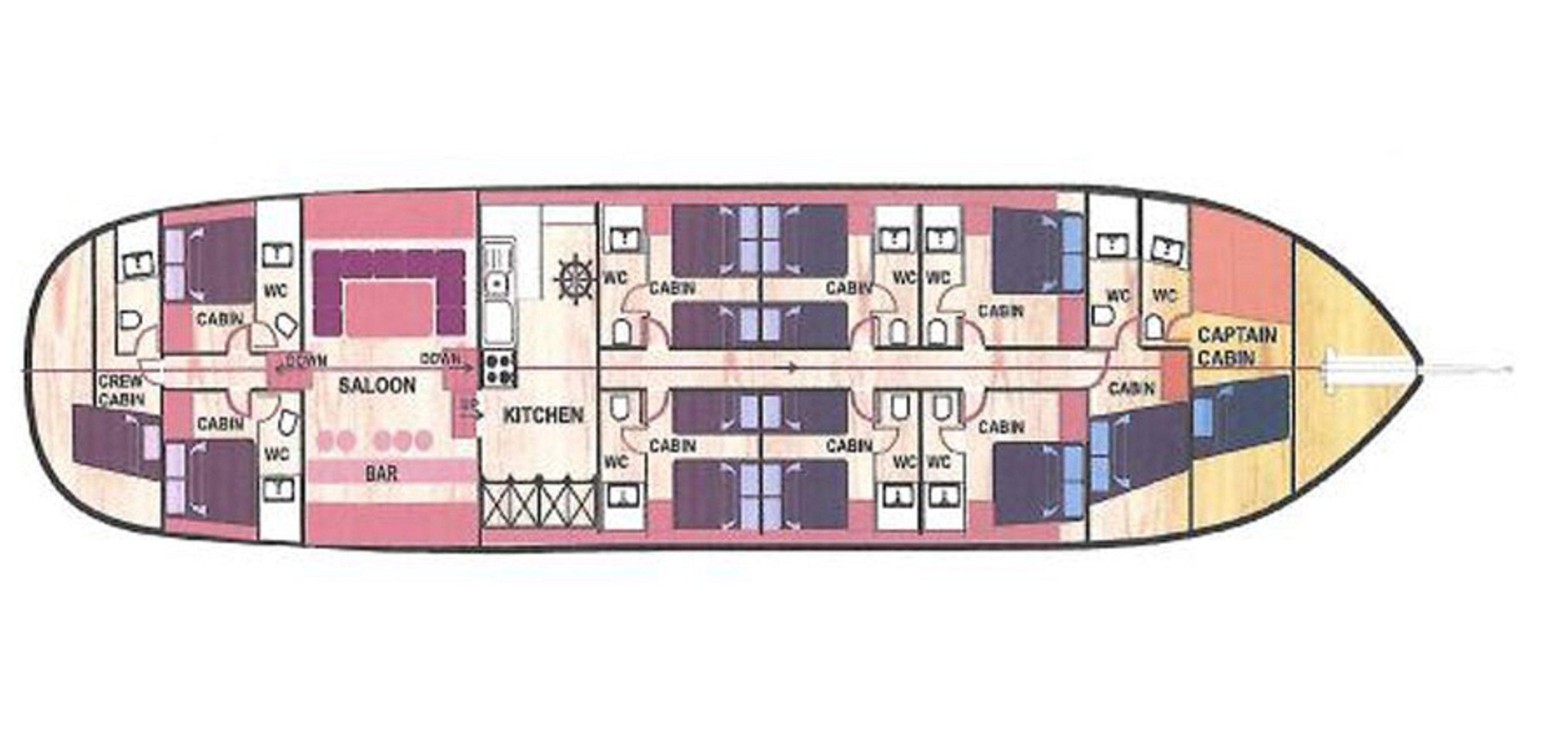 Welcome on board! The Pearl 111 is a three-masted wooden schooner with an overall length of 99 feet (30 meters). You will explore an extraordinary adventure in the Maldives Archipelago on a 99 feet wooden schooner. Only 12 passengers and 5 crew members onboard!