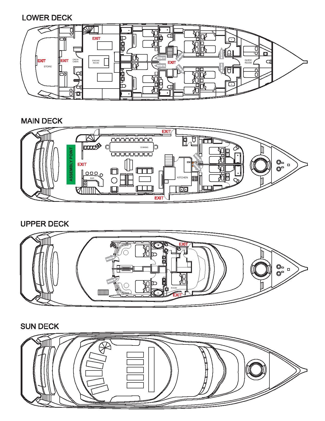 Structure 4 Decks (lower, main, upper and sun deck)