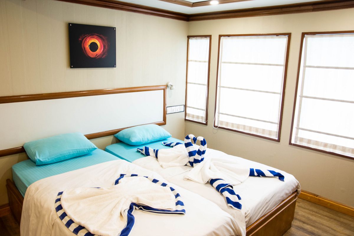 Emperor Virgo is a diver’s fantasy liveaboard, combining exquisite style and amenities for a truly unique charter. Comfortable accommodations can be designated for up to 18 guests across its 9 cabins.