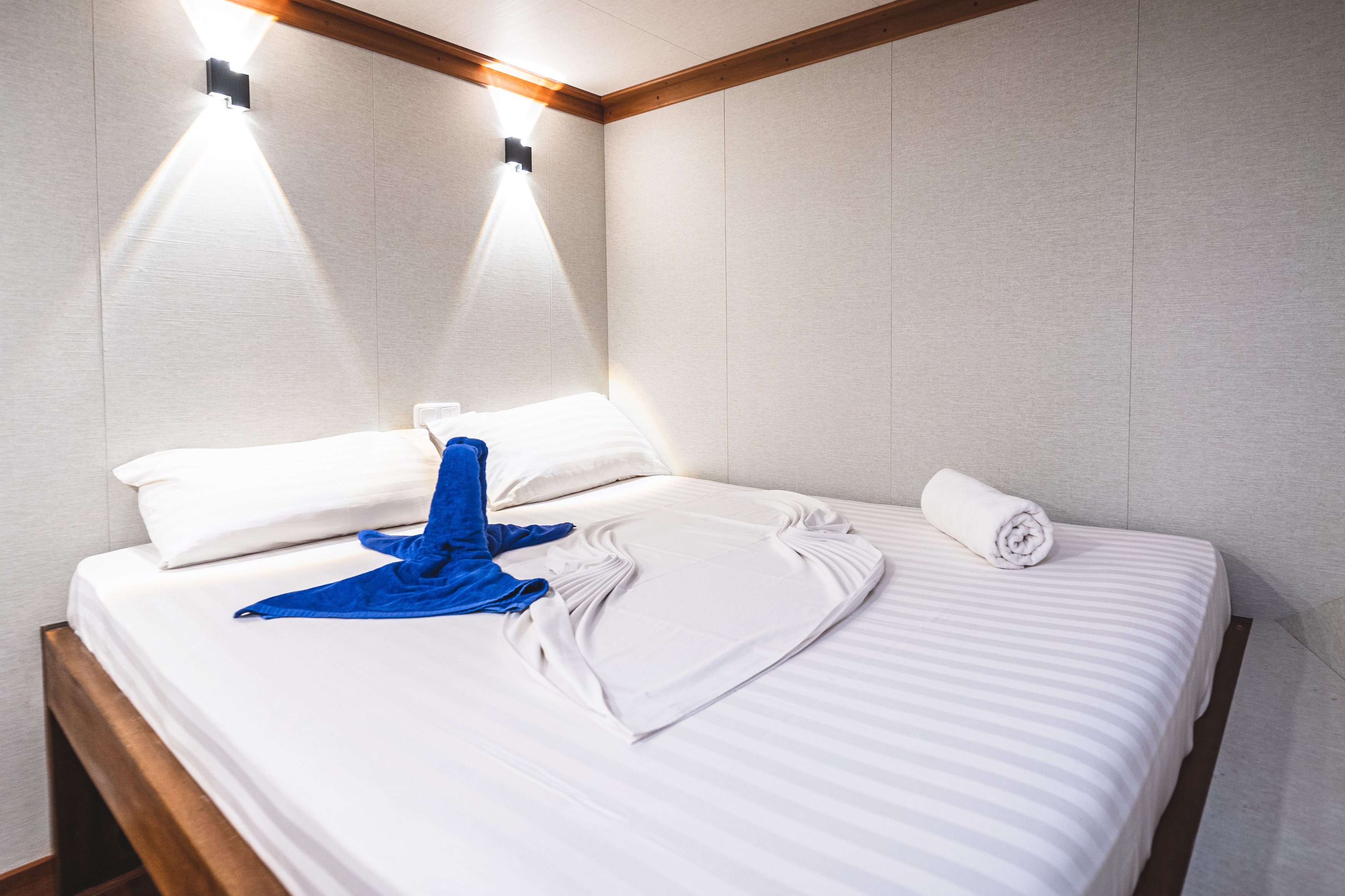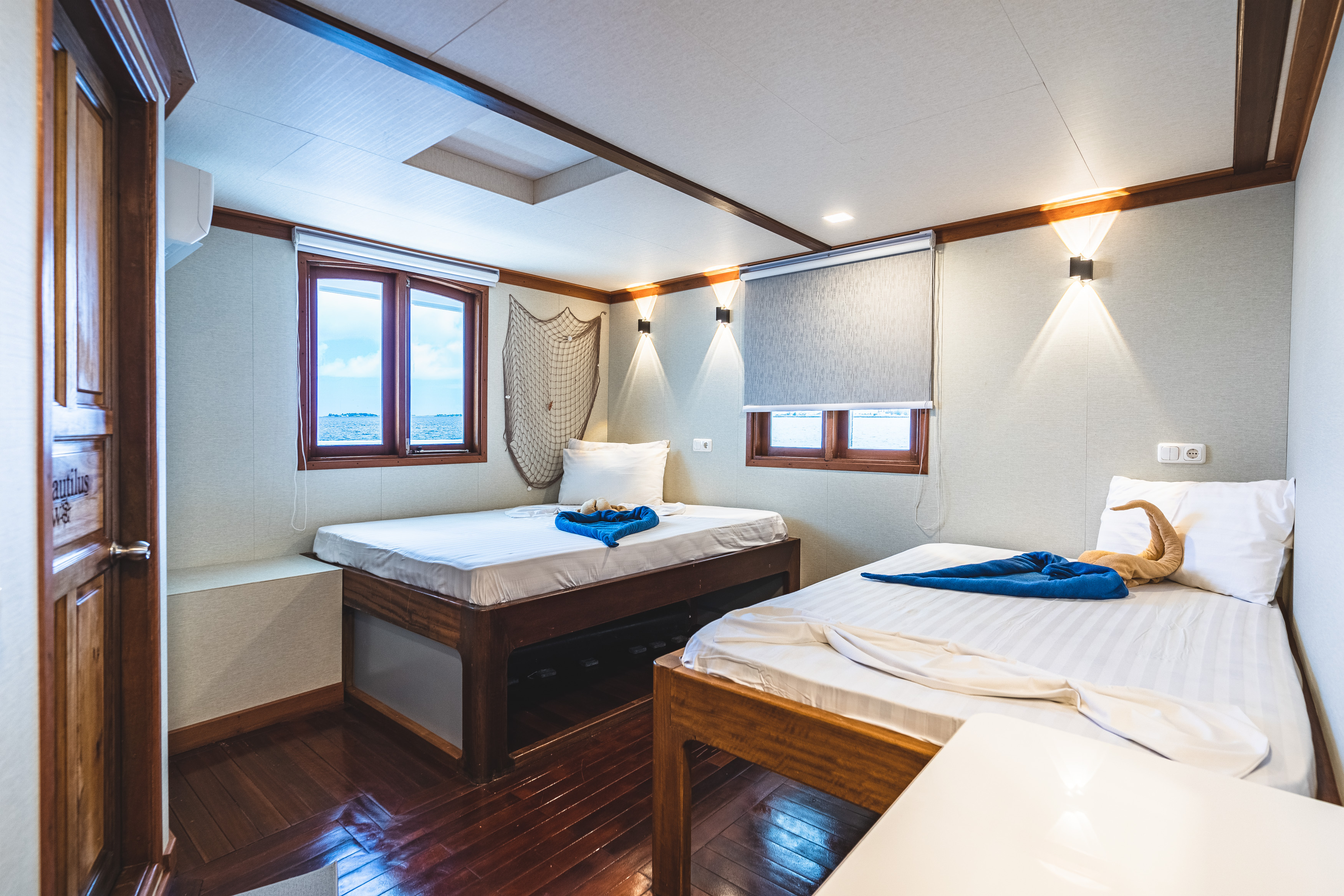 The cabins of the Nautilus Two are larger then on every other liveaboard in the Maldives. So we have the cabin built up to 20 m² - 25 m² in size, which you can find not on another liveaboards.